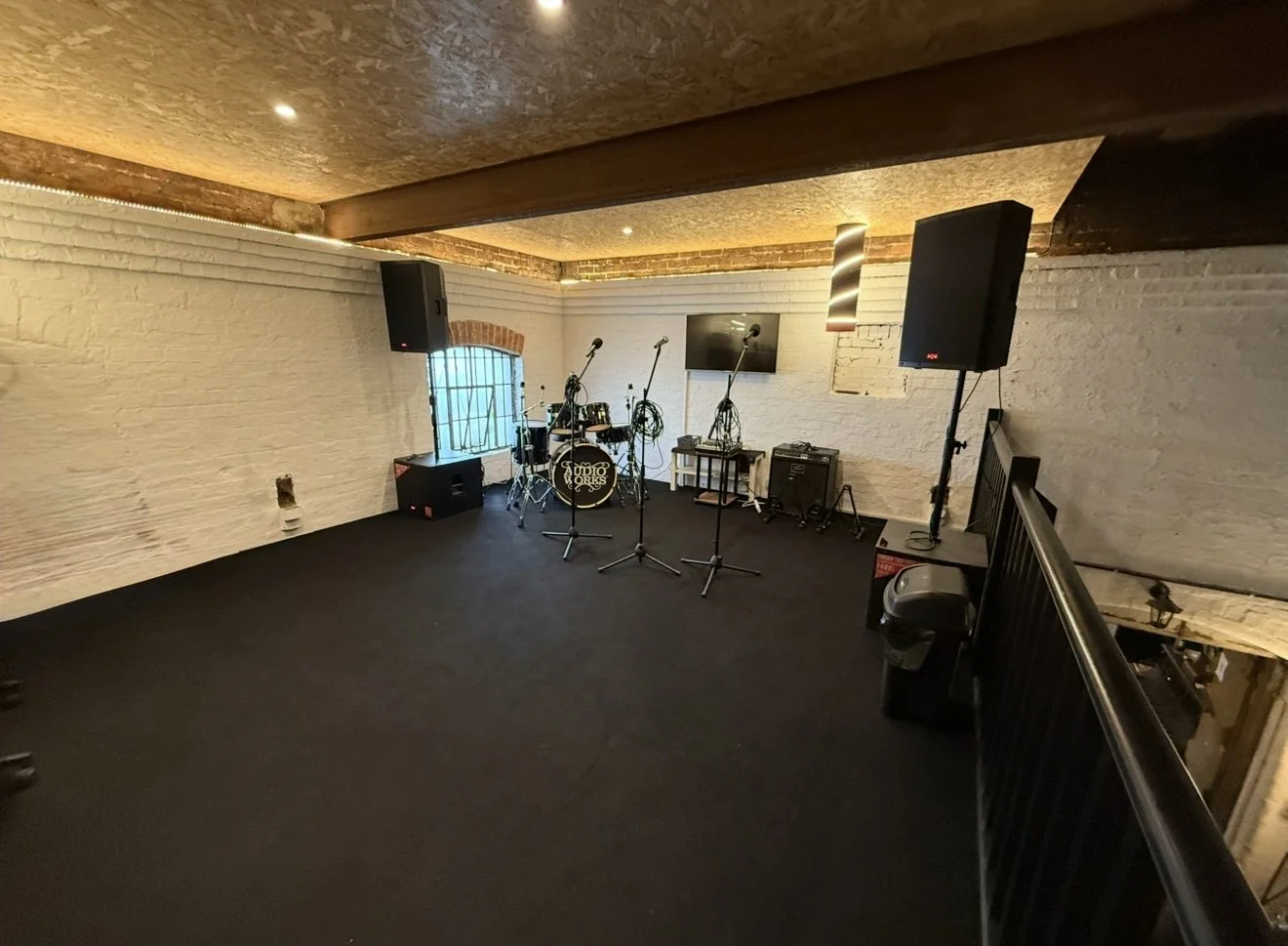 All Audio Works equipment is available to hire at no extra cost. We simply require to know what is needed so we can ensure the equipment is set up on the mezzanine floor ourselves for health and safety reasons.